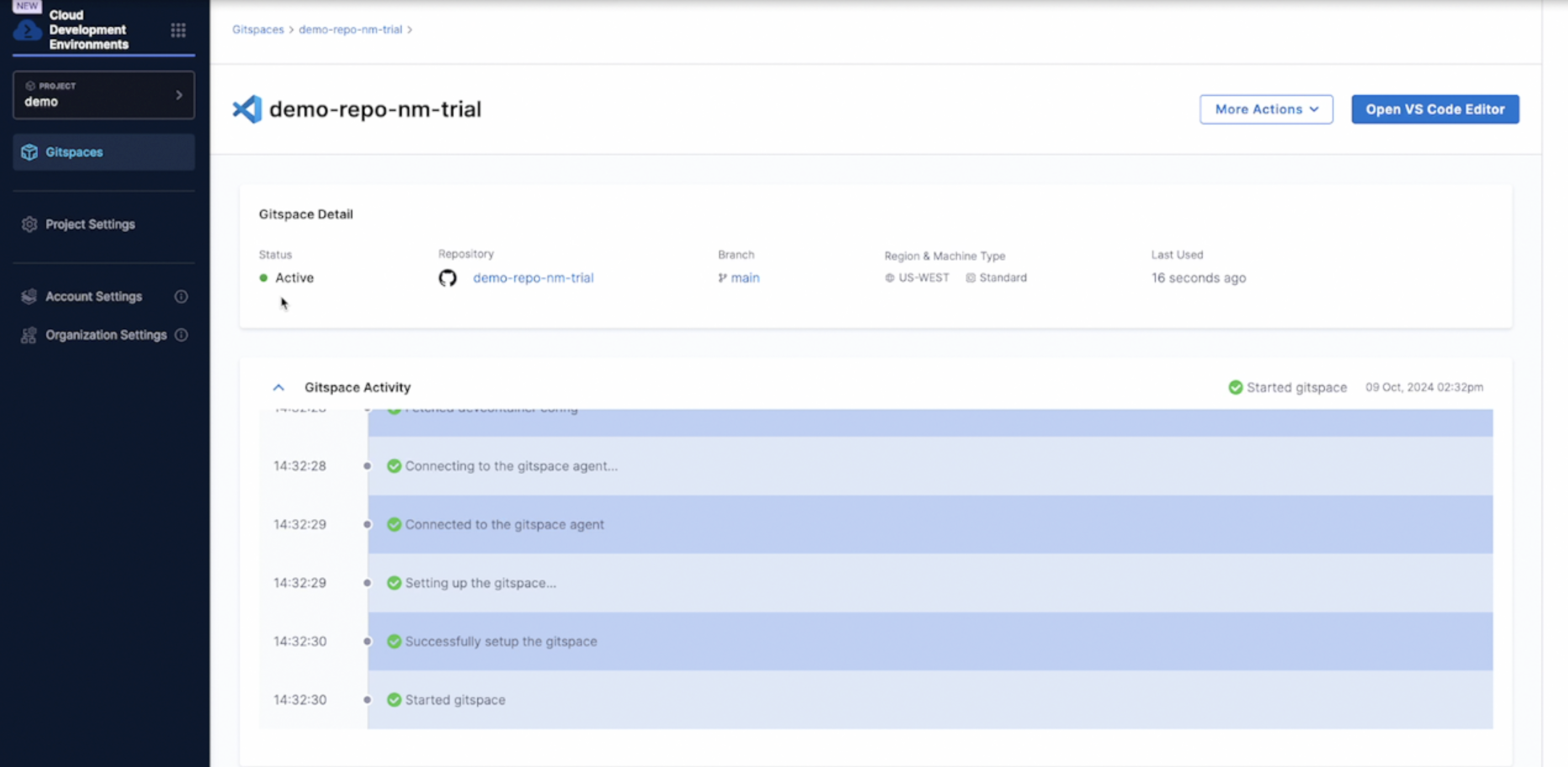 Here’s how to create and open a Gitspace in VS Code:
