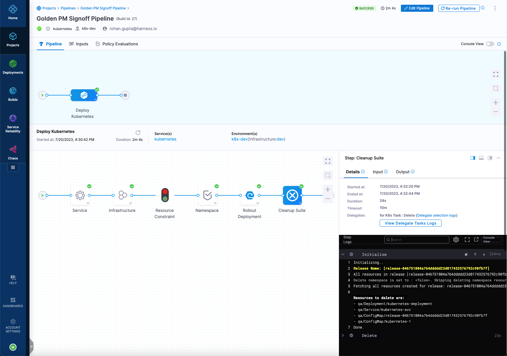 - A final cleanup step to delete the Kubernetes deployment at the end of the pipeline.