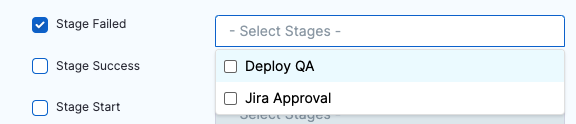 When you select the Step Failed event, you can scope the notification to specific steps rather than receiving notifications for every step failure in the pipeline. After selecting Step Failed, use the Select Steps dropdown to choose the individual steps you want to monitor.