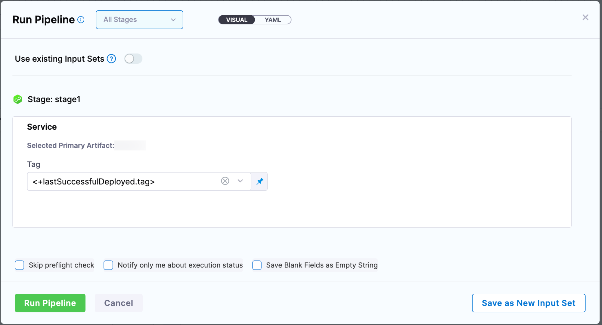• When the artifact tag is configured as an expression with <+lastSuccessfulDeployed.tag>, the pipeline will deploy the most recent successful artifact tag associated with the service.