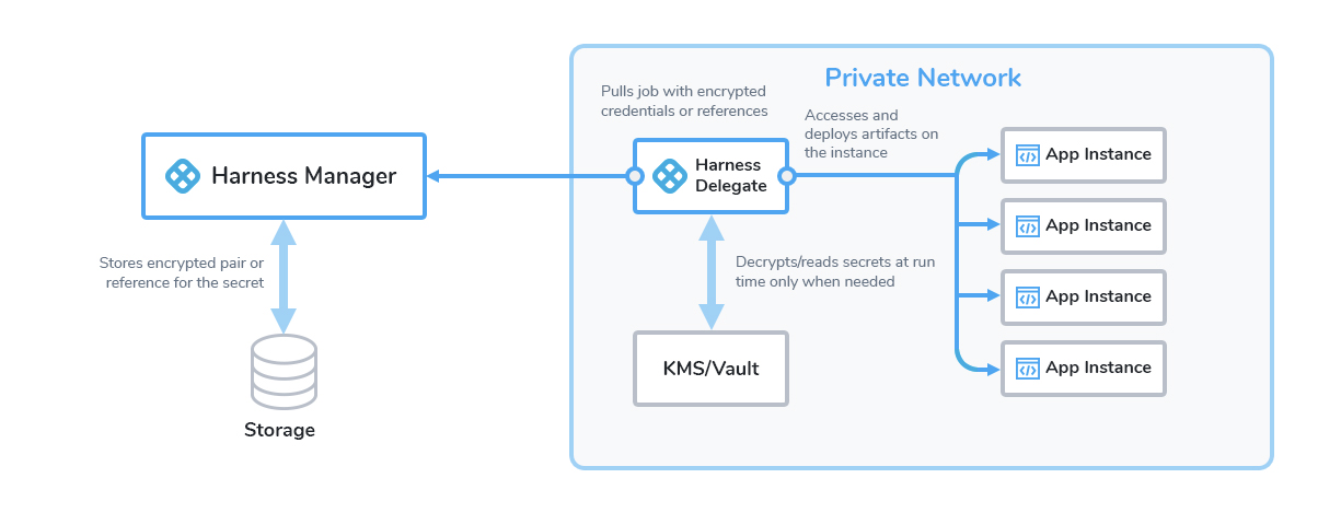 A diagram illustrating how Harness handles secrets.