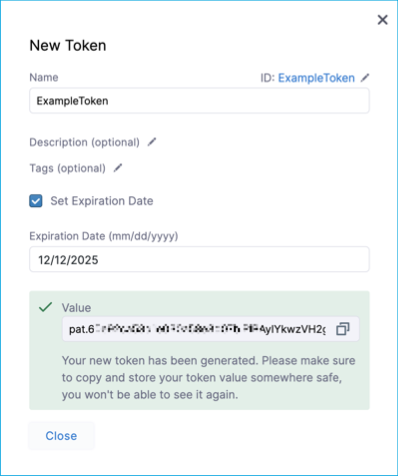 3. You can edit the name, description, tags, and expiration date. You can't edit the Id or the token's value.