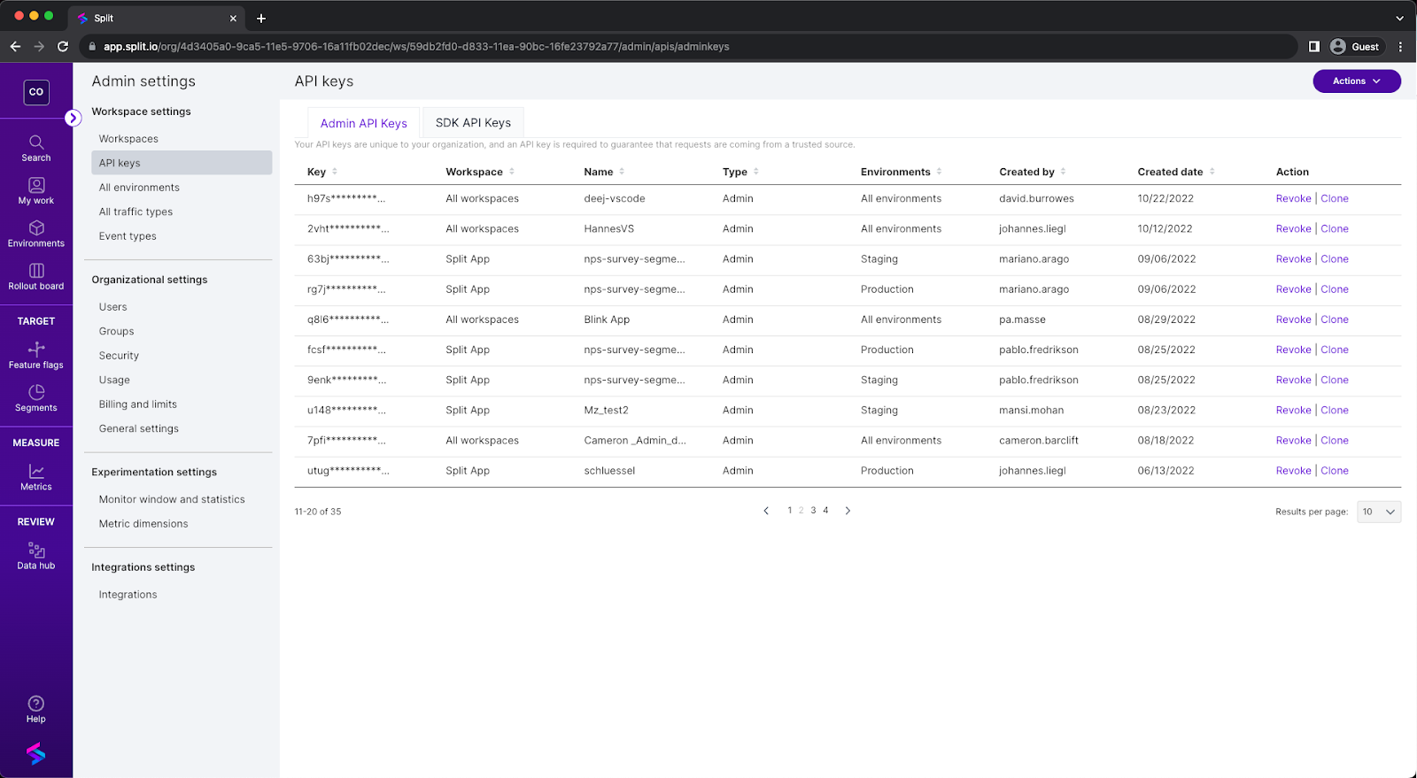 This documentation describes the Split legacy Admin API keys experience.