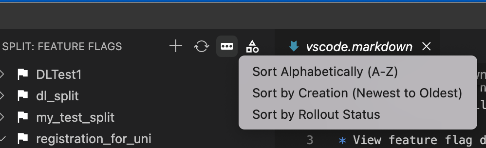 Click the sort icon to sort your feature flags. You can sort your flags: