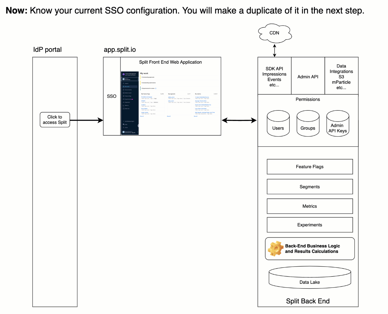 app.harness.ioto your IdP. See Configure SSO below. - Assign all of your current Split users to the SSO application for