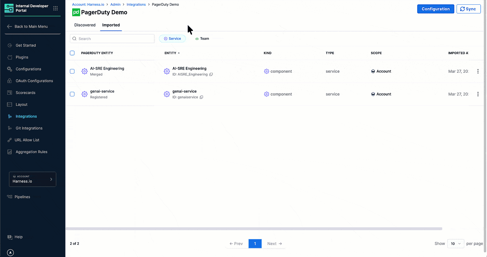 This section connects Harness IDP to your PagerDuty account.