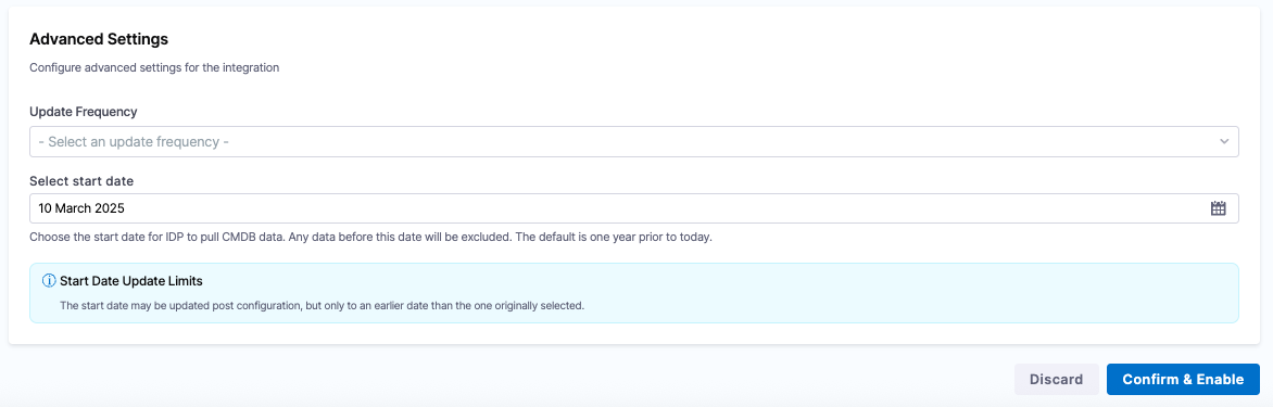 1. Display Name and Unique Identifier - Configure which CMDB columns serve as the display name and unique identifier for discovered entities. These determine how entities are labeled and deduplicated in the Discovered tab.