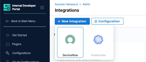1. In Harness IDP, go to ConfigureIntegrations.