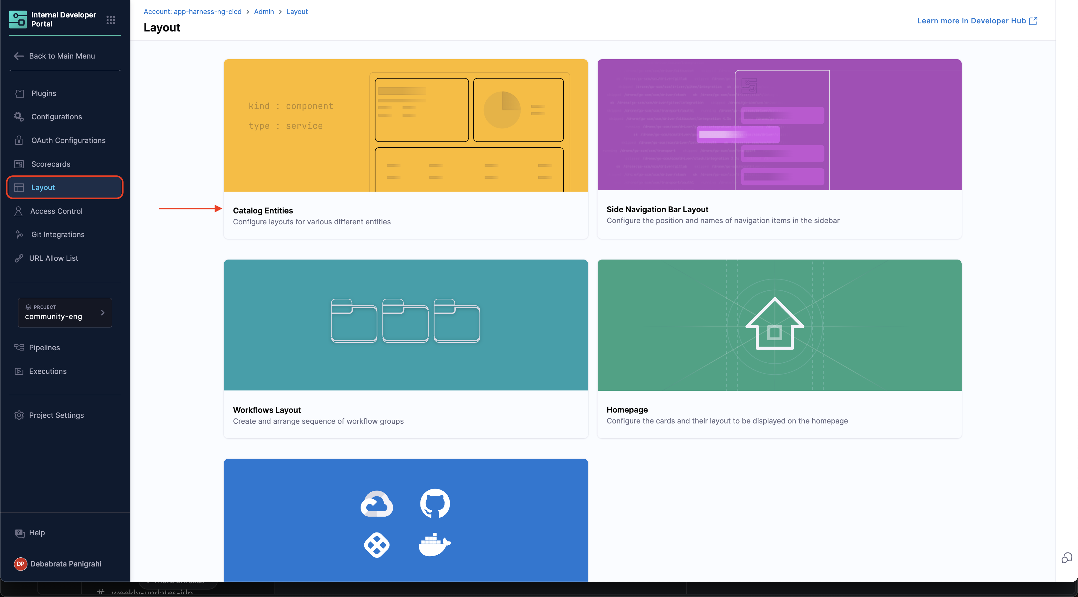 - Go to the Layout Page and under Admin and select Catalog Entities.