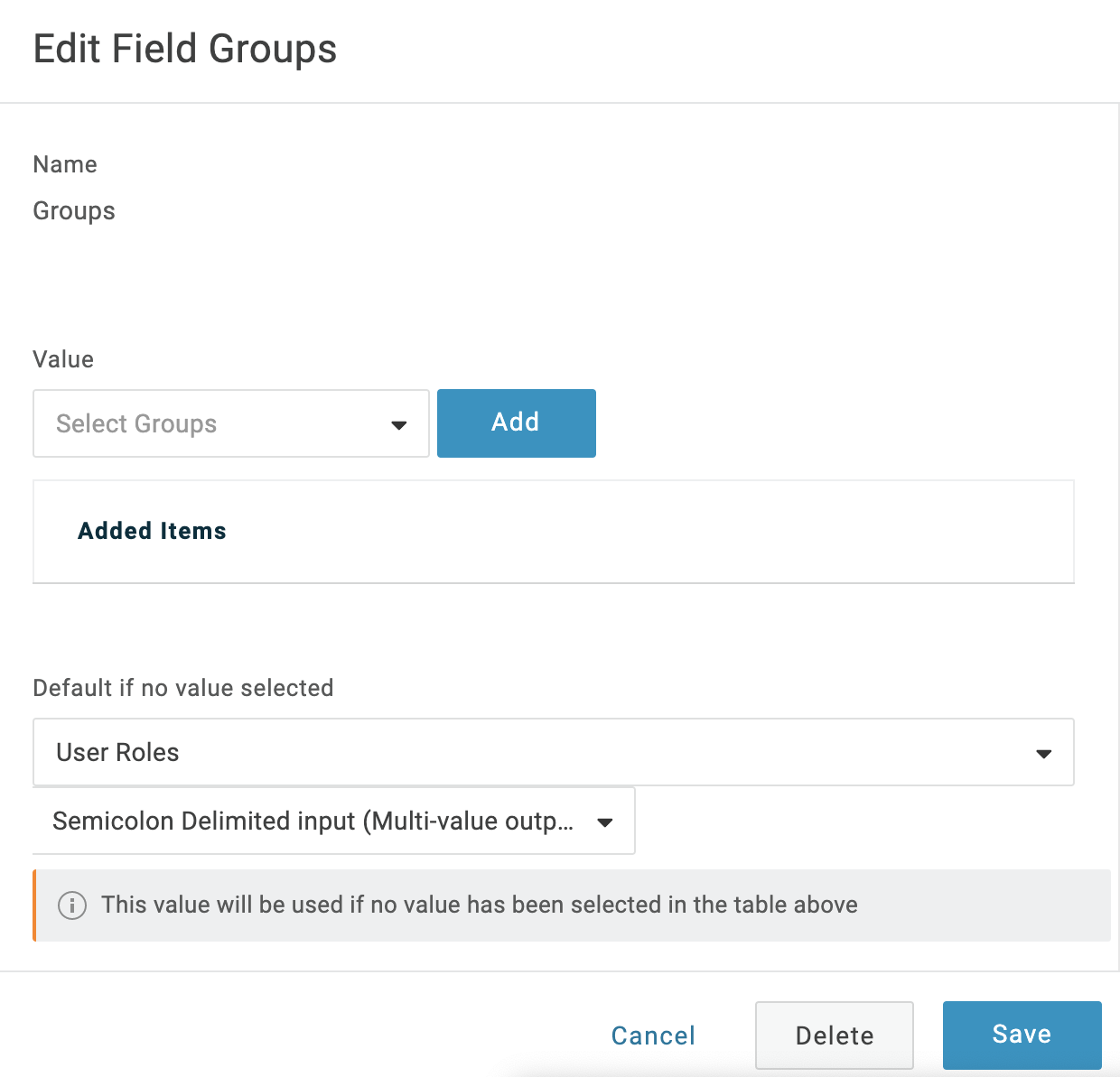 11. In the Group Name, enter the name of the Field Group you configured in OneLogin.