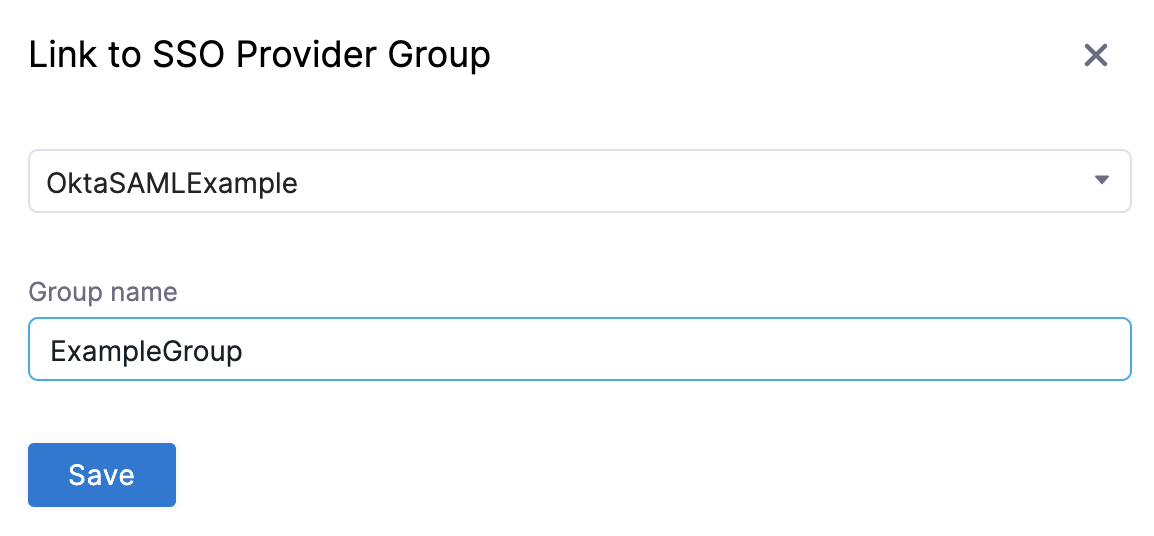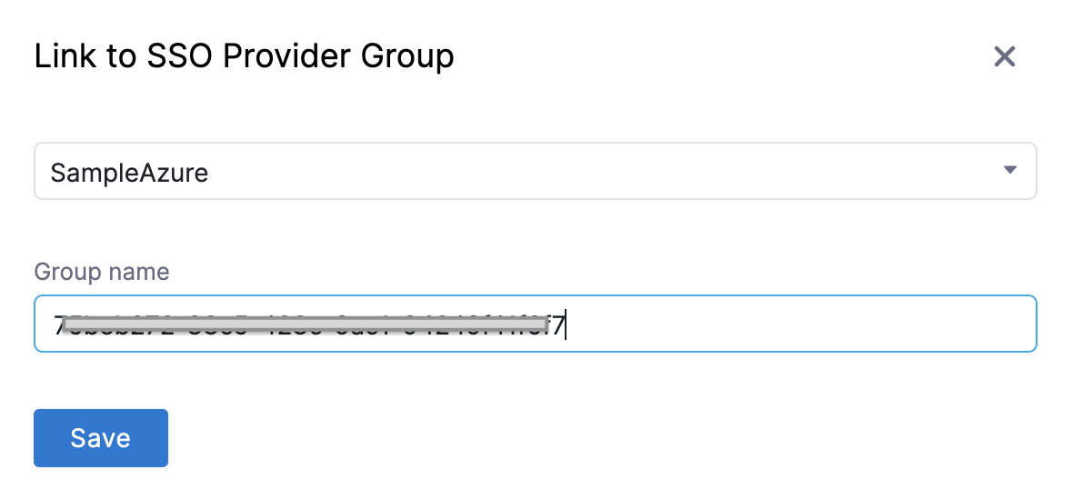 10. In the Link to SSO Provider Group dialog, in Search SSO Settings, select the SAML SSO Provider you have set up.
