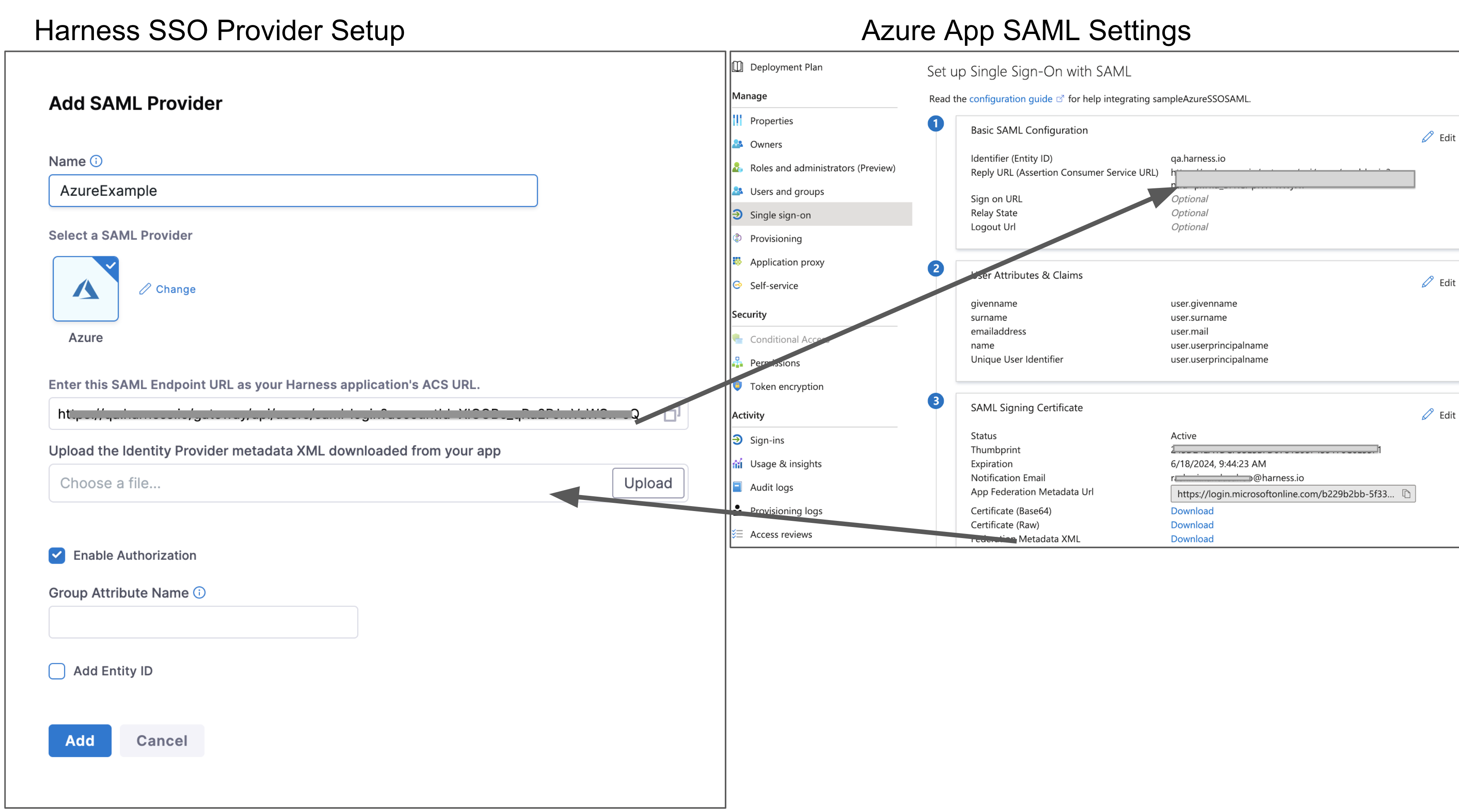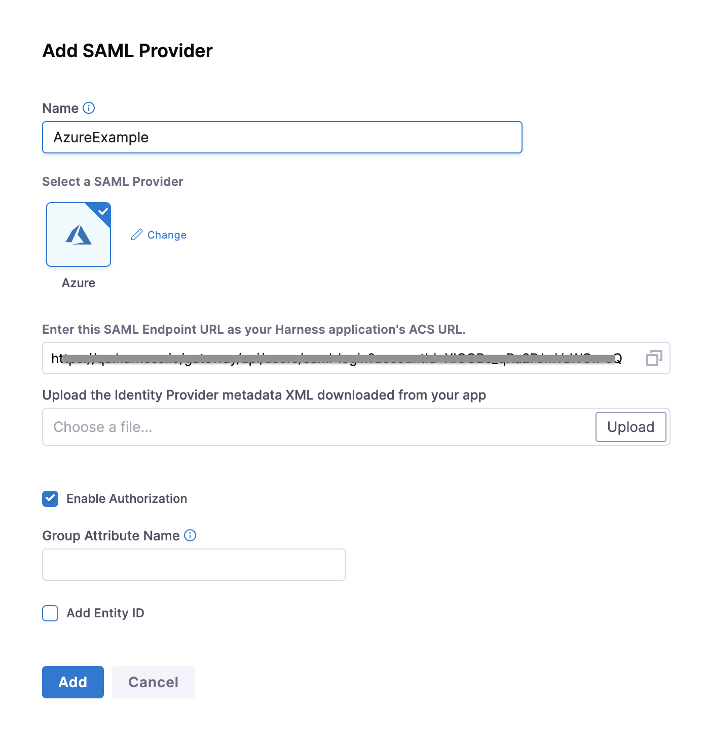 In your Harness tab, navigate to the Add SAML Provider page: