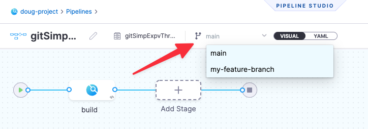 This workflow assumes that your branch has a .harness subfolder with the same pipeline and input set as main.