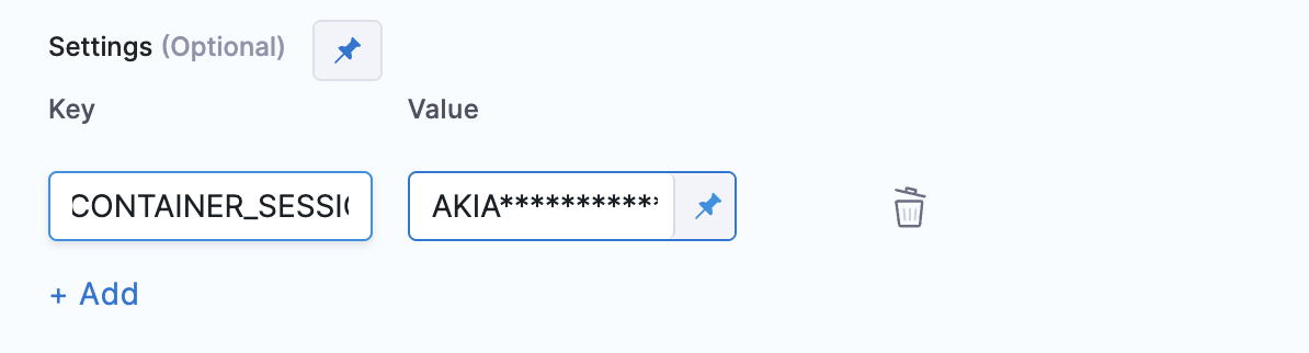 To enable session-based authentication with AWS, for example, you can pass AWS session token using the key CONTAINER_SESSION_TOKEN with a Harness text secret of your token.