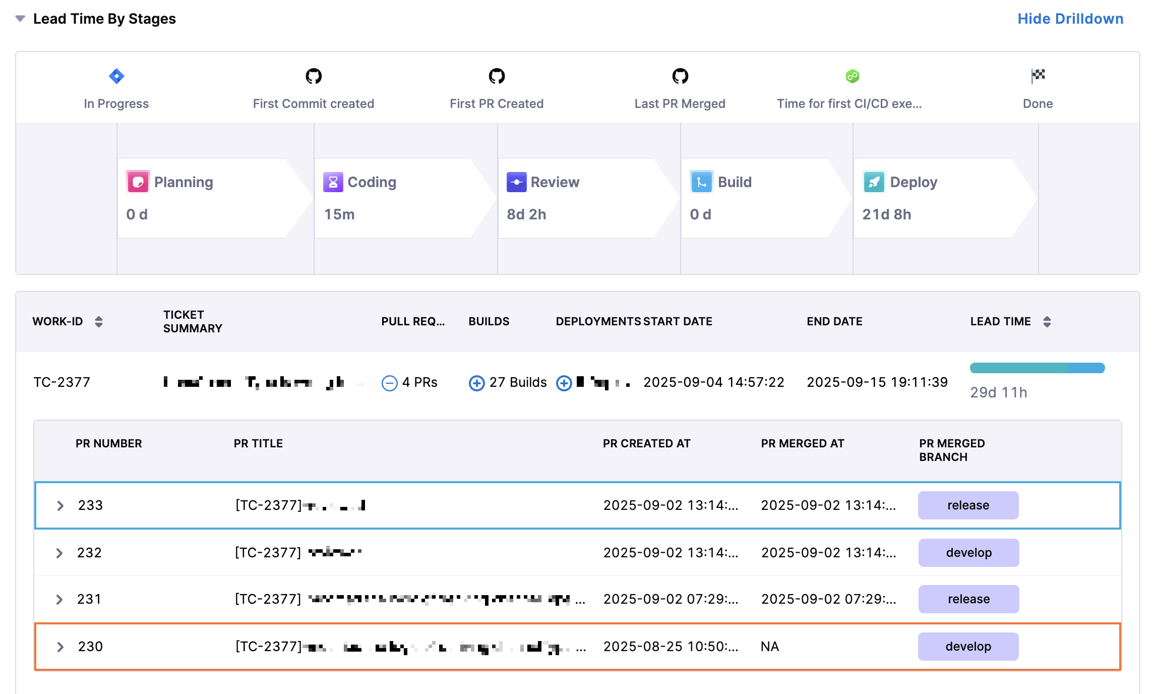 - View Breakdown: Provides a detailed breakdown of lead time by team.