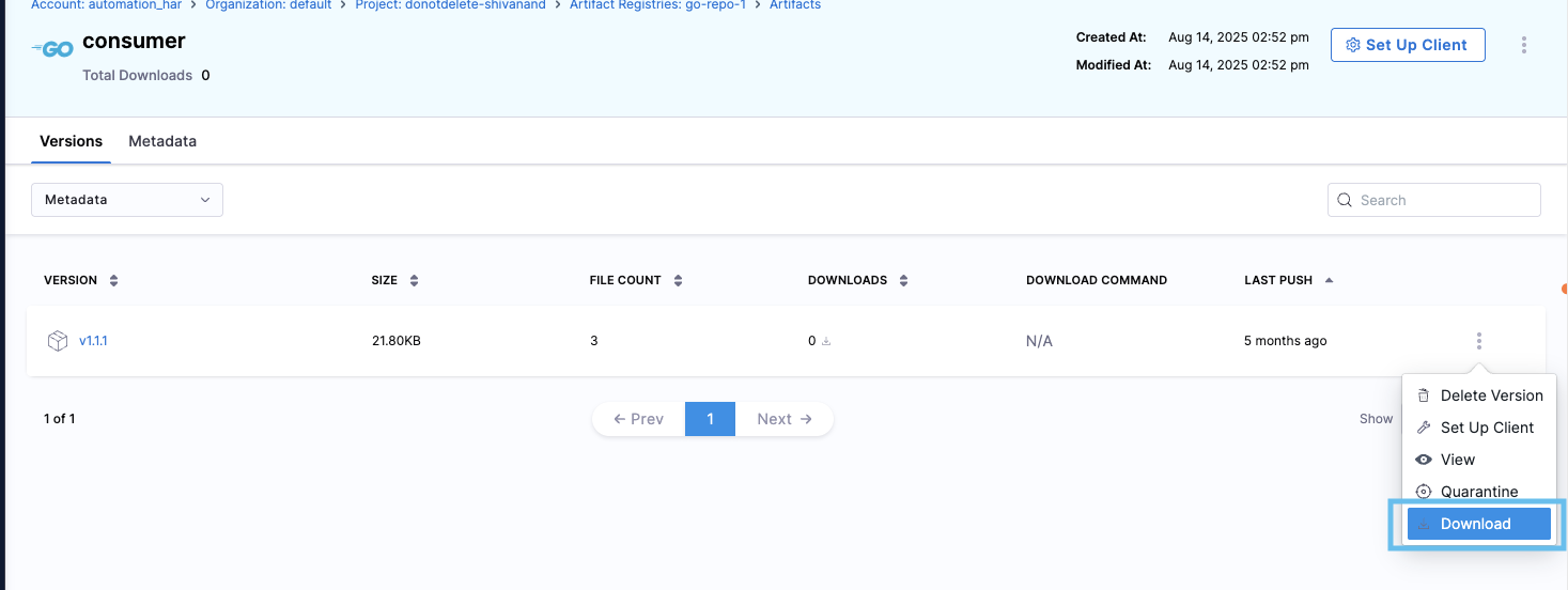 This feature works seamlessly with Docker digests and all supported artifact types, making it easy to retrieve artifacts for offline use, backup, or distribution.