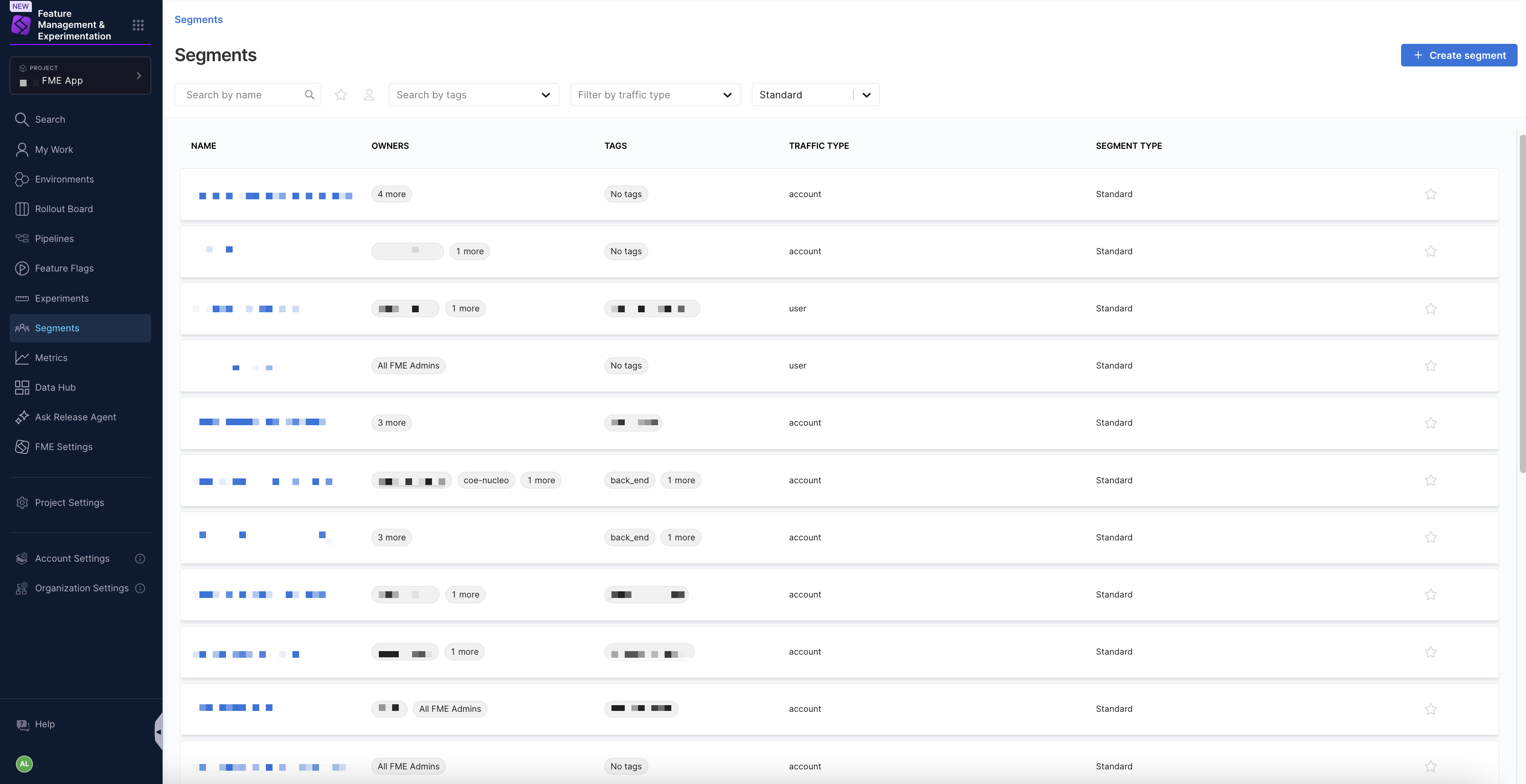 Harness FME has improved the browsing experience for feature flags, segments, and metrics by replacing the browse panels with full-width list pages, consistent with other Harness modules.