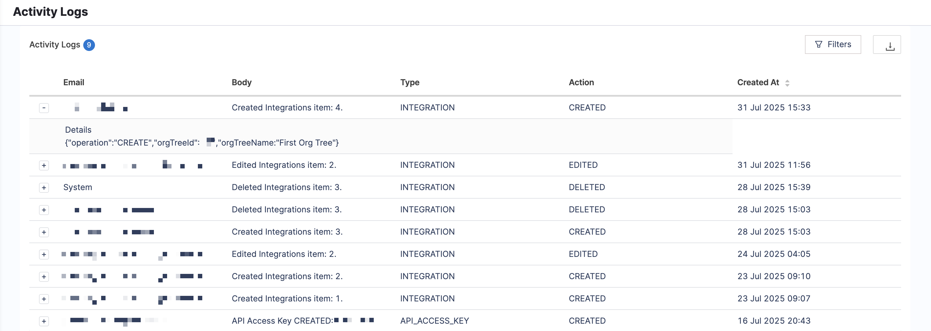 Typeas a Filter. This allows you to filter the activity logs using filters such as Action, Email, and more. (SEI-5157) (SEI-5343) - Users on the SEI Harness Platform will now have an improved navigation experience, eliminating the need to select Collection Category and Collections to access Insights.