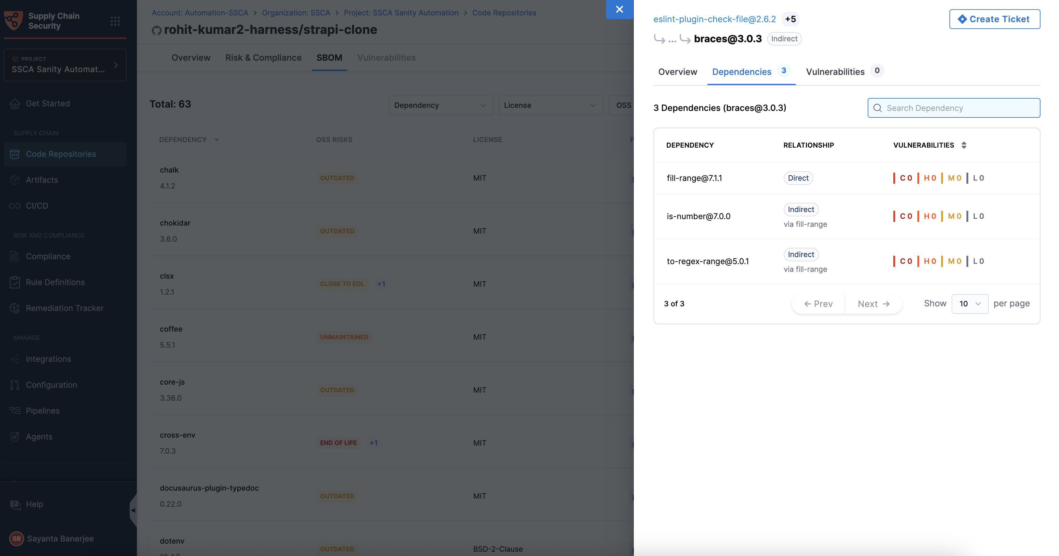 - The SBOM tab now displays component-level vulnerabilities by mapping STO Snyk scan results to SBOM components.