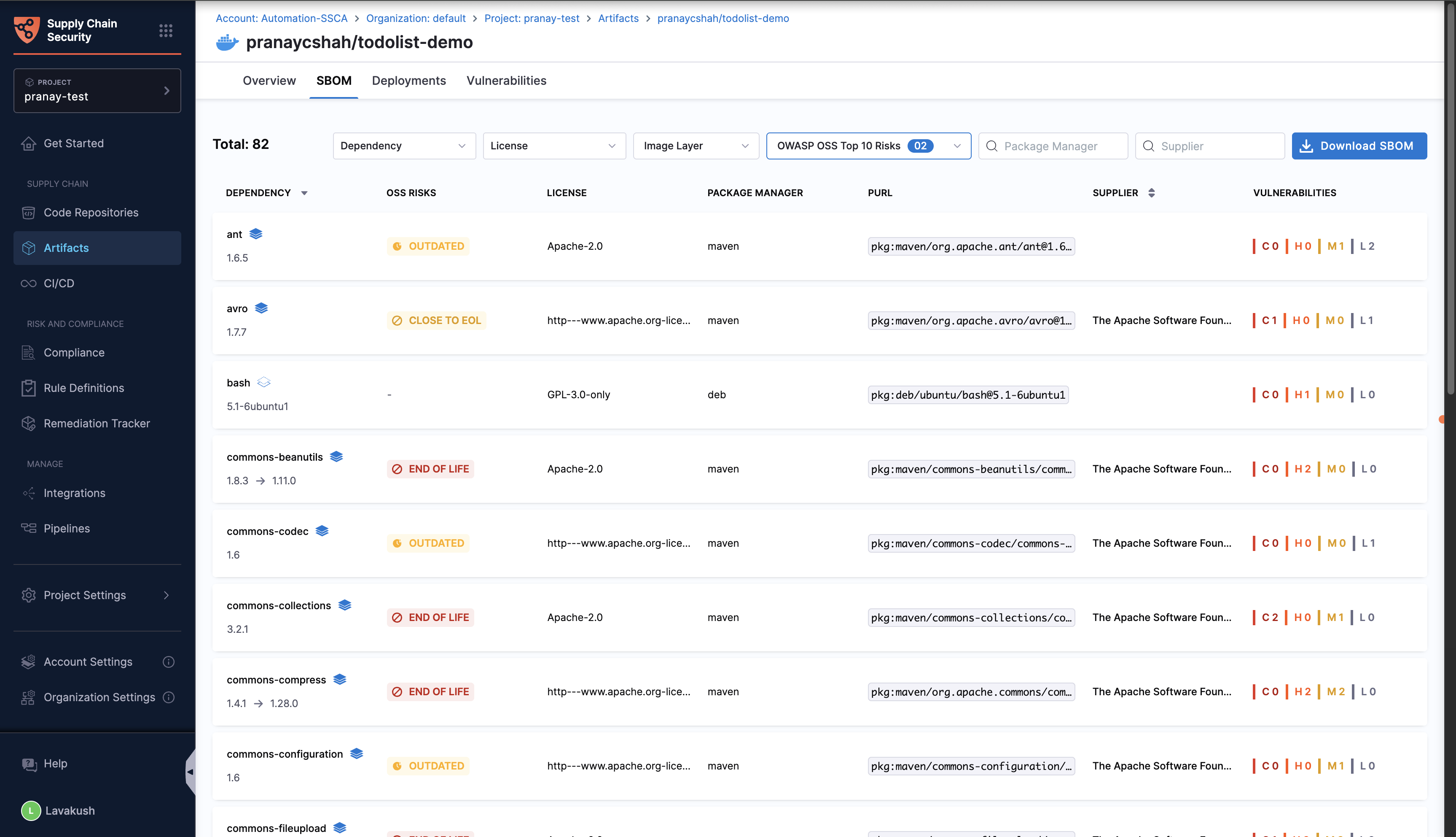 Known Vulnerabilities in dependenciesfilter on the SBOM page was not working as expected. - Fixed an issue where CD events were missing from the Chain of Custody during artifact redeployments. Events are now properly captured and displayed, ensuring complete traceability.